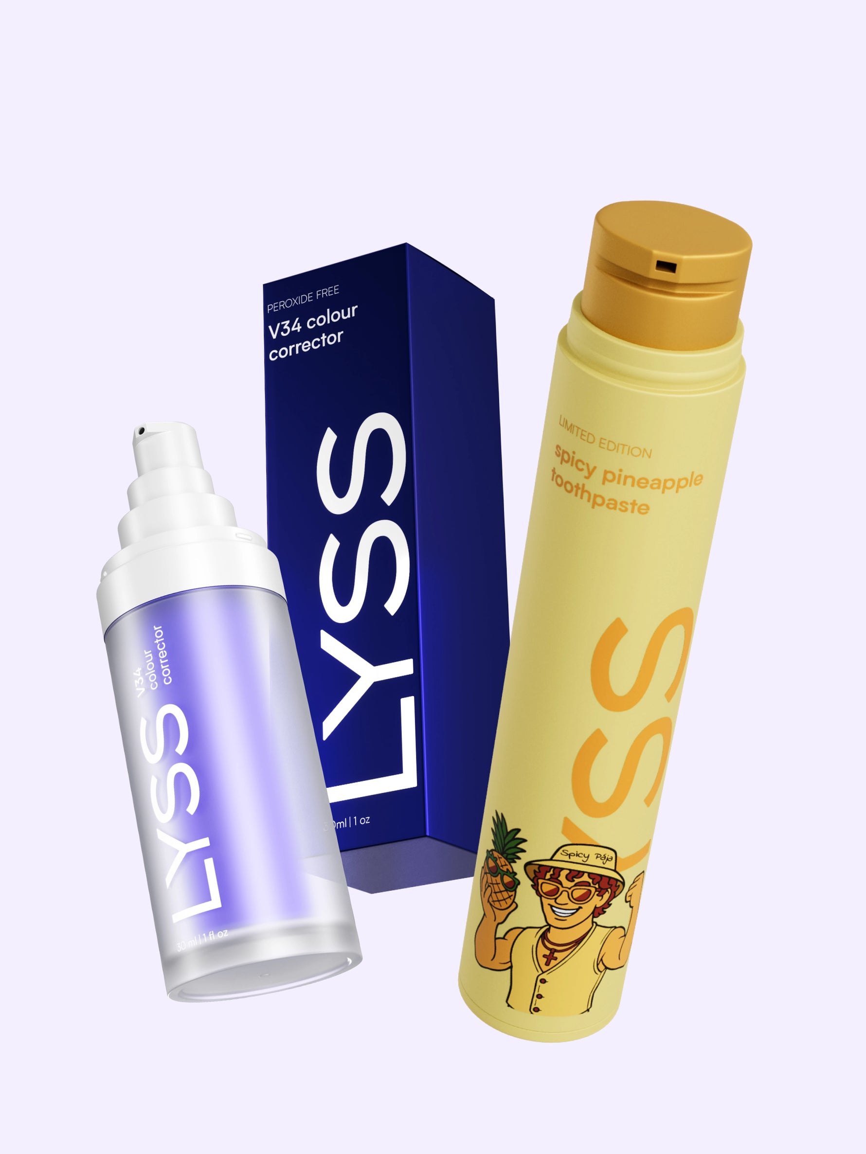 Balenie obsahuje 1x V34 korektor (30ml) a 1x LYSS zubnú pastu (60ml).