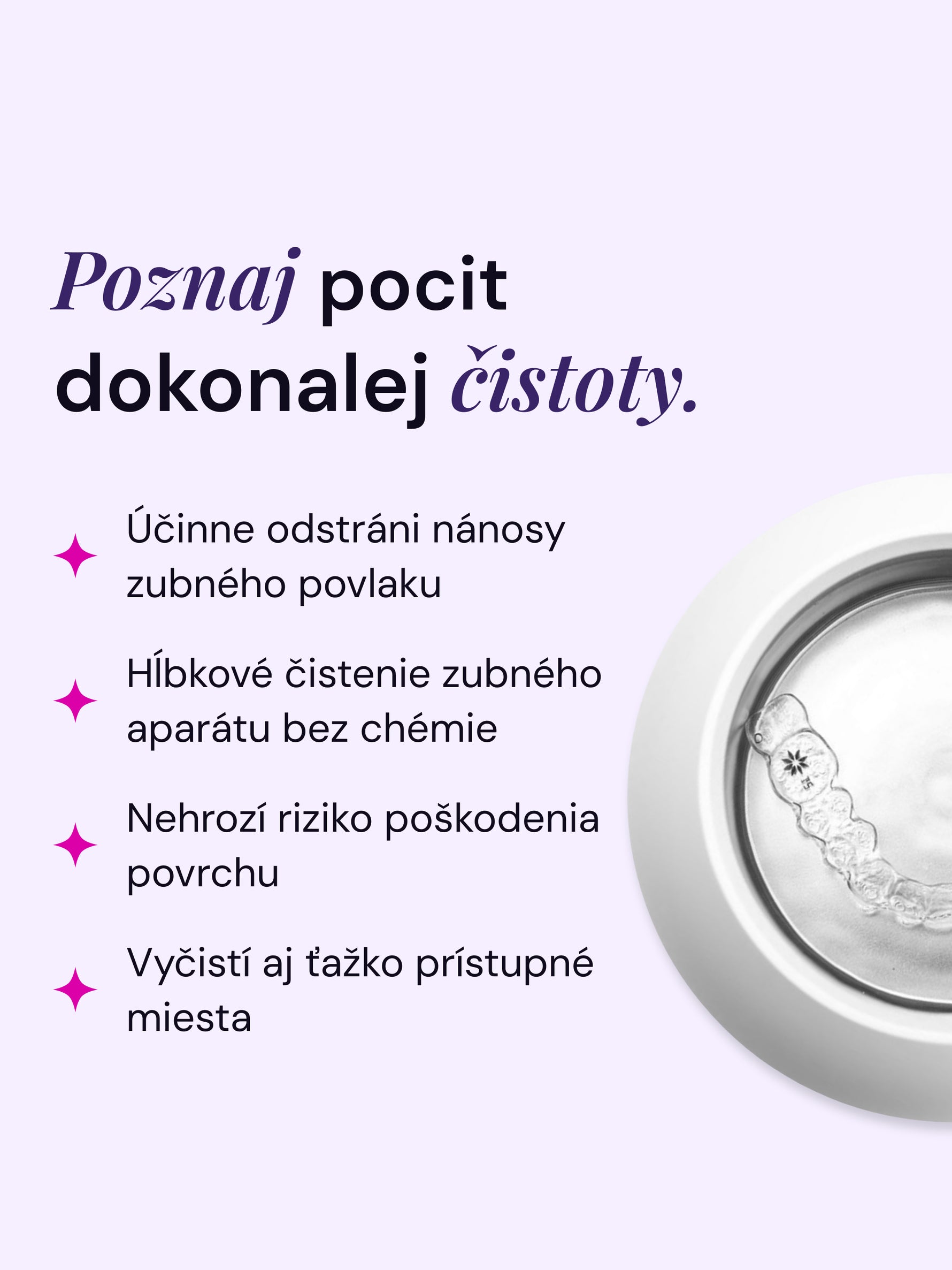 Zabudni na drhnutie kefkou. Stačí pár kvapiek vody, stlačenie tlačidla a za päť minút je všetko čisté – od strojčeka po chránič zubov. S LYSS ultrazvukovým čističom sa môžeš spoľahnúť, že každý deň nosíš dokonale čisté pomôcky s úsmevom a bez starostí.